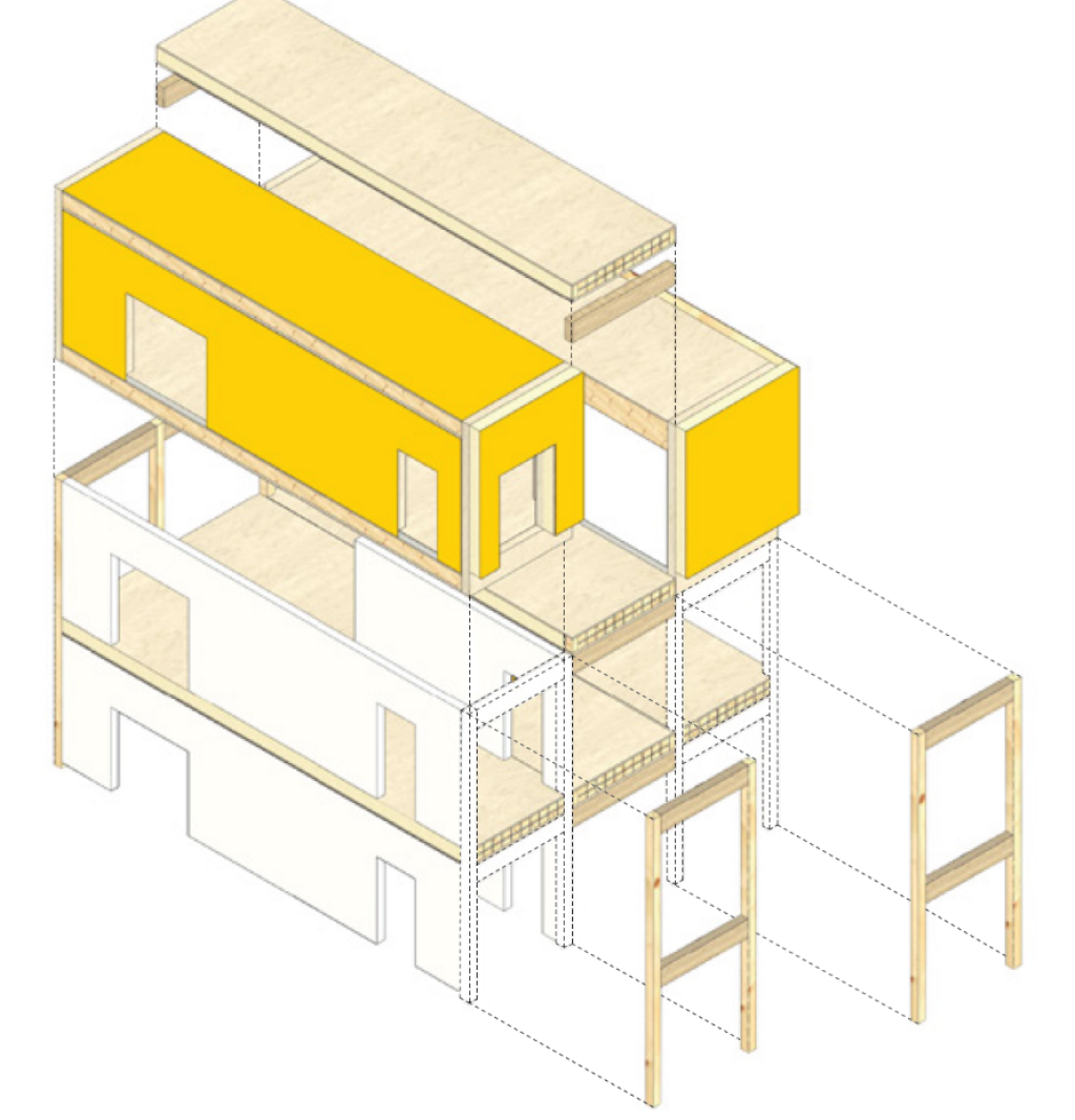 Abbildung 1 Holzbau im System, Systemansatz, © Hochschule Wismar, Fachgebiet Energie- und Ressourcensparendes Planen und Bauen, Prof. Martin Wollensak
